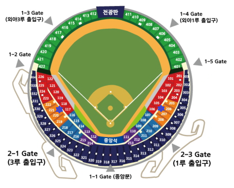 잠실야구장 좌석 배치도 - 홈&원정 응원석 정보