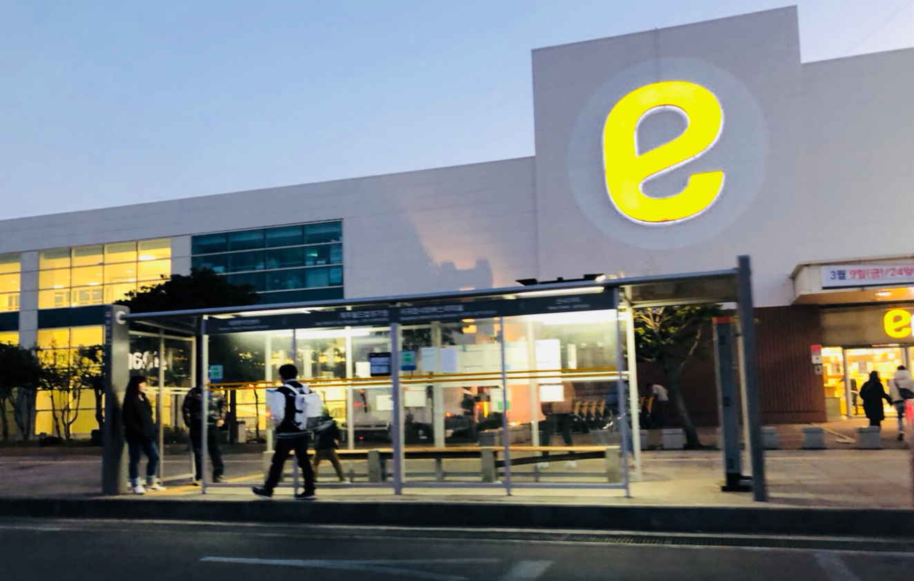 제주월드컵경기장 서귀포버스터미널 정거장에 내리면 E마트가 보인다. 경기장은 E마트와 바로 붙어있다.