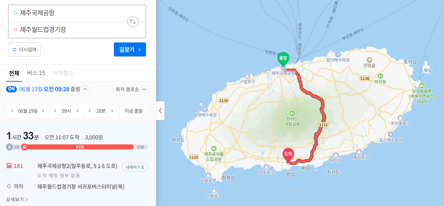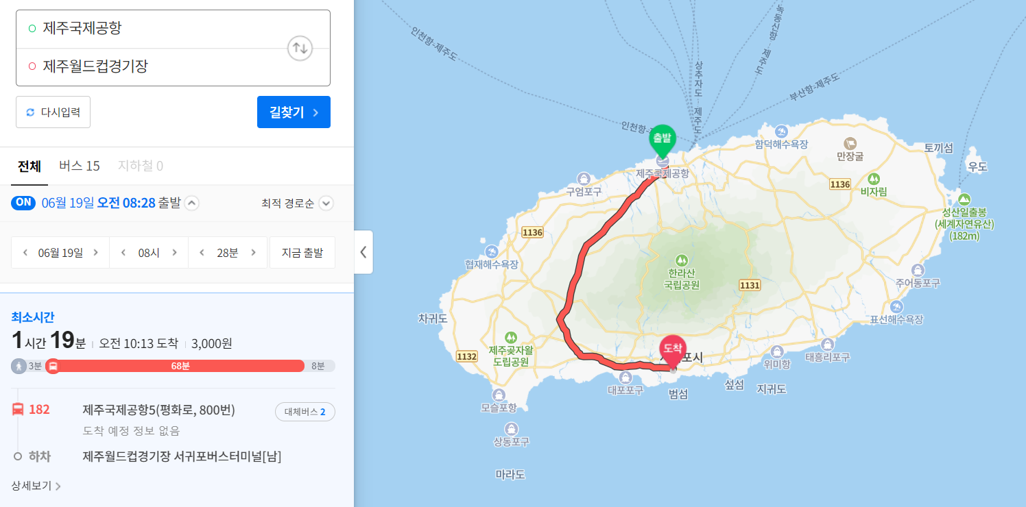 제주 국제공항에서 제주 월드컵 경기장 까지 가는 버스는 다양하다. 그 중 내가 가장 애용하는 버스는 181번 182번 버스다.