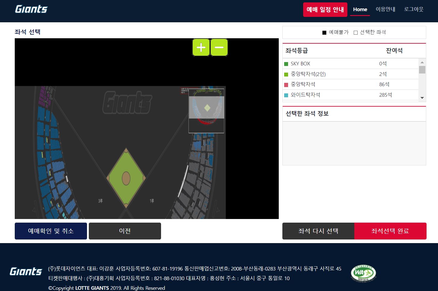 롯데자이언츠는 티켓링크나 인터파크와 같은 예매대행 사이트가 아닌 롯데자이언츠 홈페이지를 통해 예매가 가능 하다.