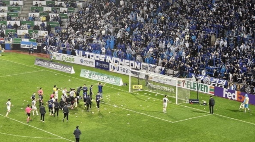 경기 승리에 대한 인천 마스코트의 과도한 세레머니에 격분한 대전 원정 팬이 그라운드로 난입하여 인천 마스코트를 폭행하는 사건
