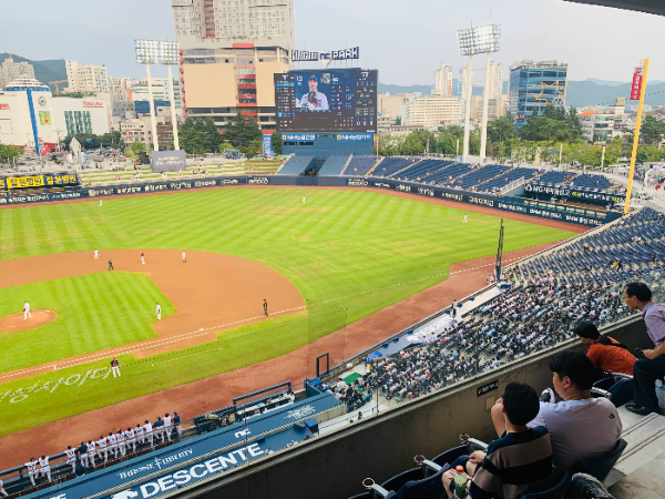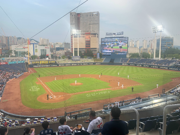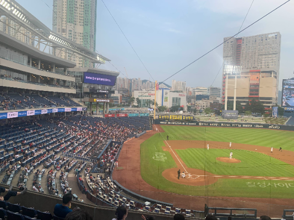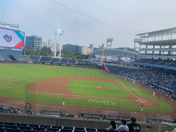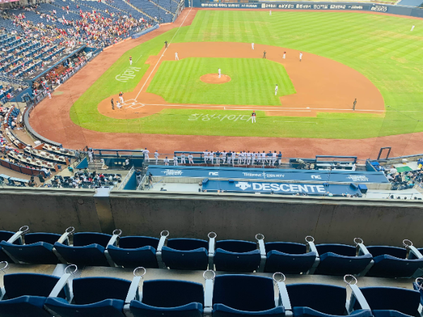개인적으로 일층에 앉으면 선수들이 얼굴을 보다 자세히 볼 수 있지만 전체적인 경기가 한 눈에 안 들어올 때가 많았다. 열심히 응원을하거나 선수들 자세히 보는 게 아니라 경기 관람이 목적이라면 2층도 정말 야구 보기 좋다.