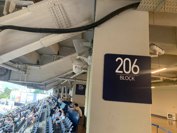 2층의 206구역이다. 생각보다 너무 잘 보인다. 잠실 야구장의 일로 오랜지석 정도의 시야로 생각된다. 아래에 1루 응원단상이 보이기 때문에 홈 팀에 응원 소리를 들으면서 경기를 관람 할 수 있다