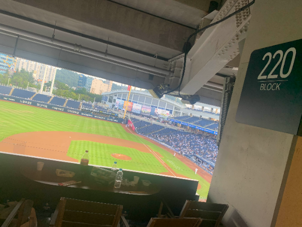 2층 220구역이다. 3루에 위치해 있으며 반대편에 홈팀의 의원이 한눈에 보인다. 바로 아래는 원정 응원단도 보인다. 이 곳도 생각보다 정말 잘 보인다.