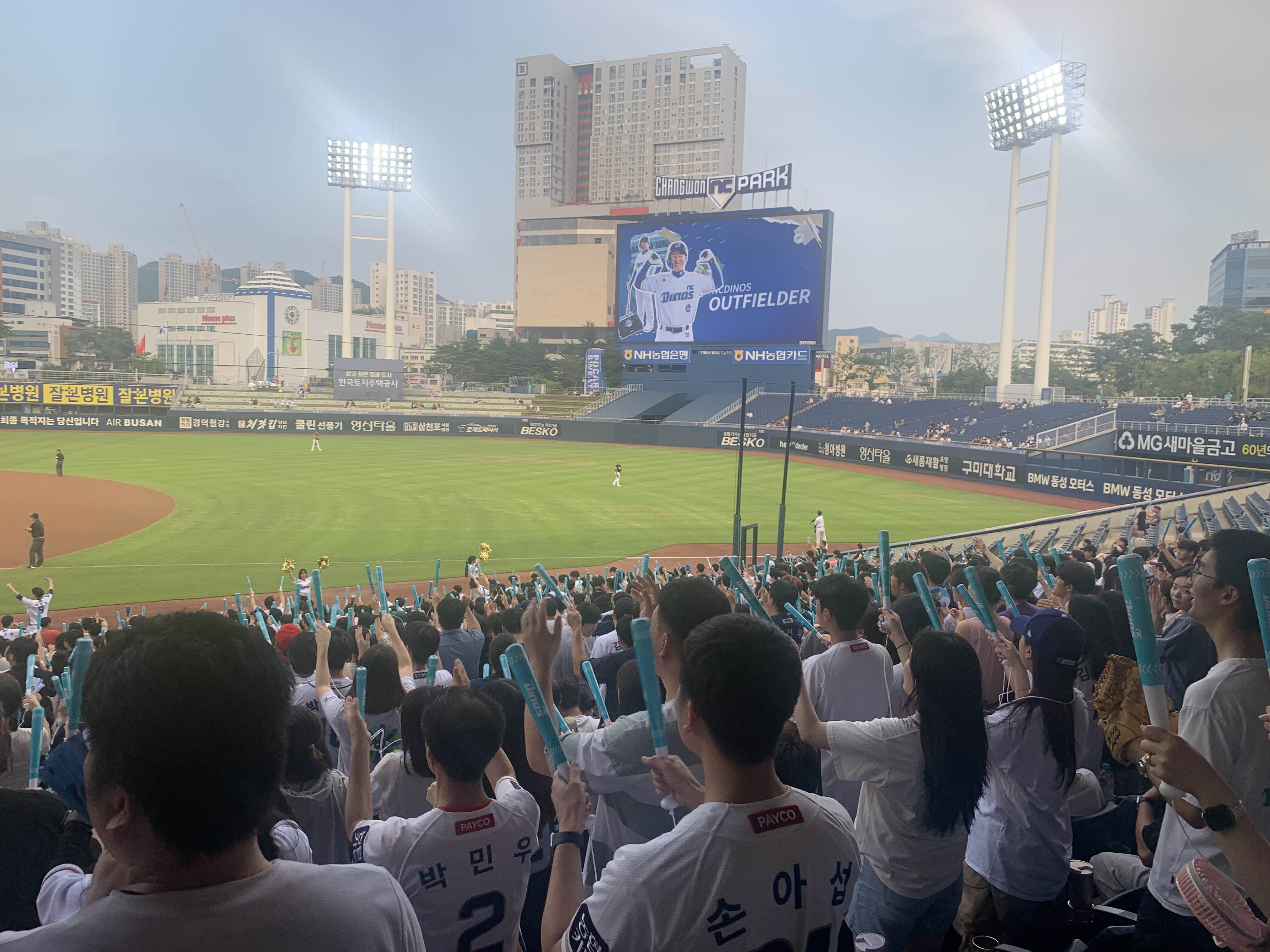 우선 여기서 야구를 보기 위해서는 편하게 앉아서 야구를 관람 한다는 생각은 버려야 한다. 모두 다 일어나서 소리치고 노래 부르고 춤을추기때문에 일단 앉아서는 야구가 보이지 않고 다같이 노래 부르고 춤을 쳐야 되기 때문에 컨디션 조절도 하고 와야 될 듯 하다.