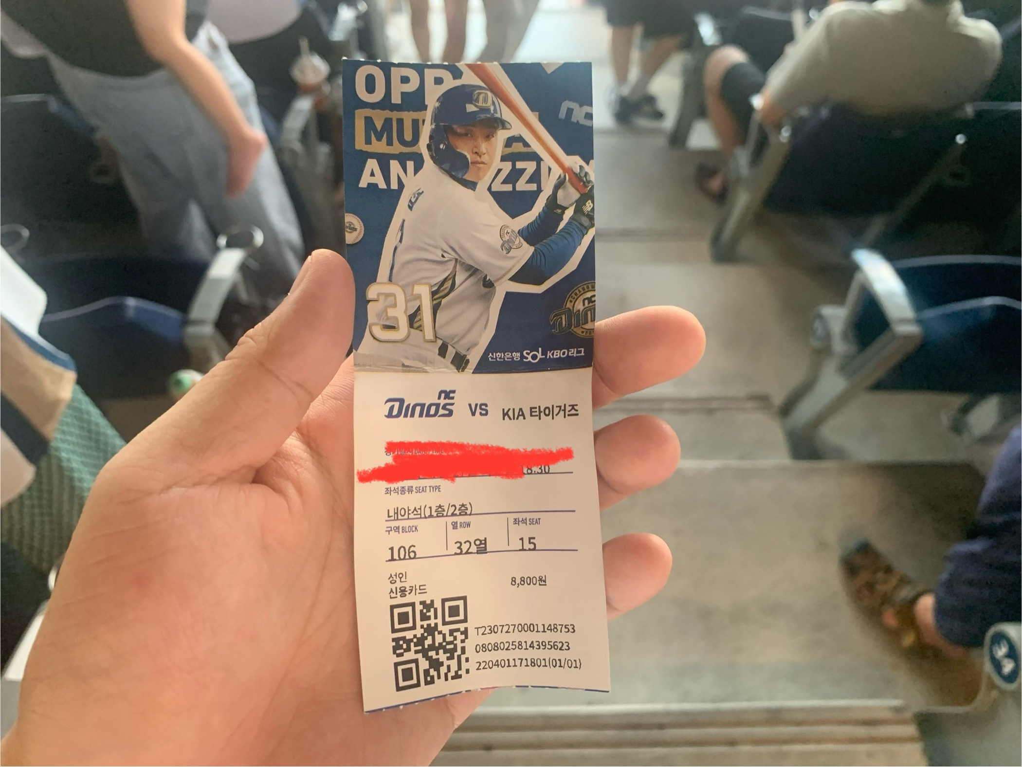 NC파크 106블럭 32열 15, 16번 좌석을 예매하였다. 105 구역과 106 구역은 예매가 시작 되자마자 바로 없어지는 가장 인기있는 구역이다. 정말 운이 좋게 예매를 할 수 있었다.