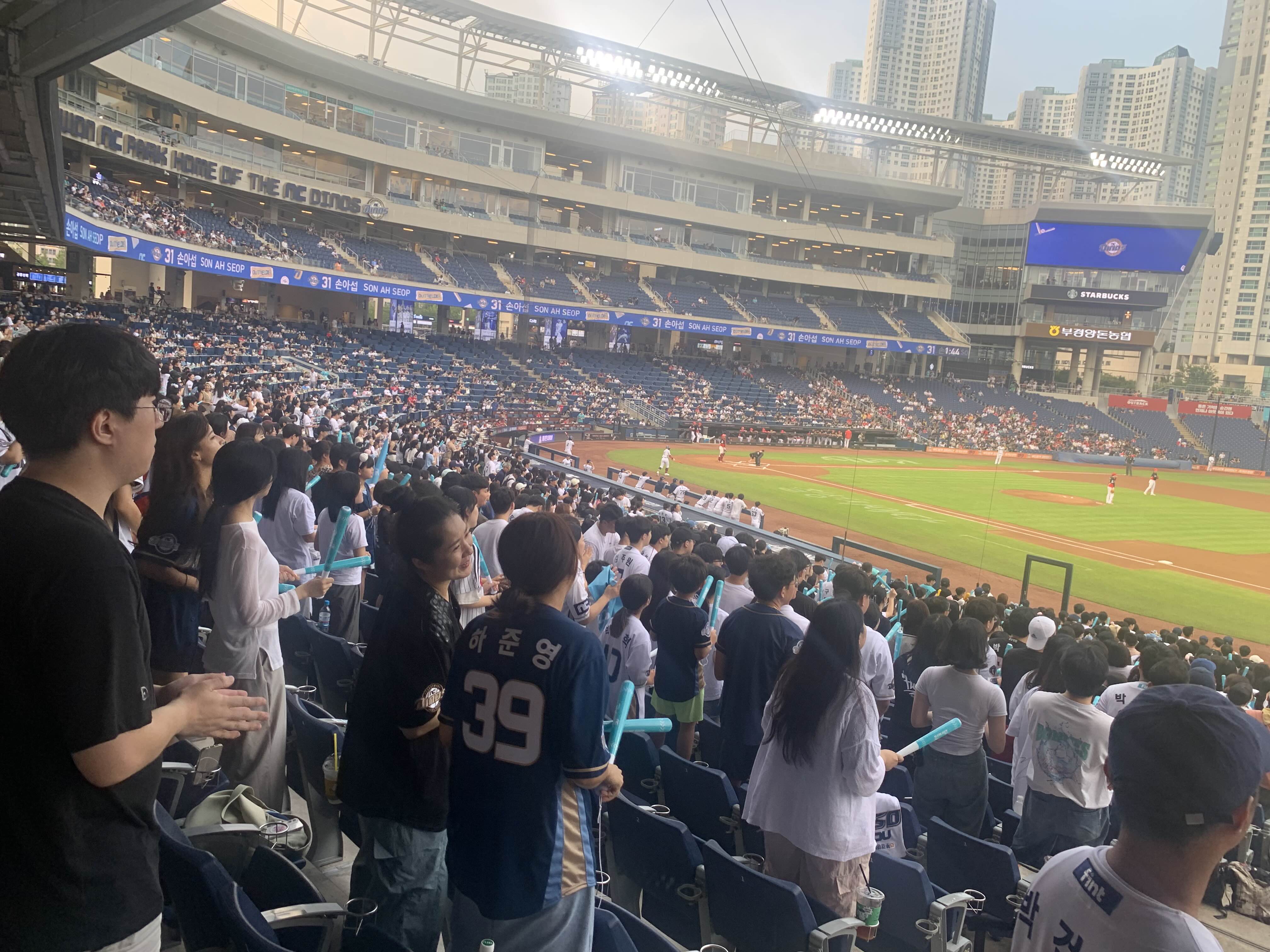 정말 야구 보는 내내 헬스장을 다녀온 듯한 체력이 소모 되었다. 조용히 앉아서 전반적인 야구를 계산 하면서 볼 생각이라면 이곳은 적합하지 않다. 다만 응원 단장과 함께 열심히 노래 부르고 춤을 추며 응원을 함께 할 열정적인 사람이라면 이 자리를 적극 추천 한다.