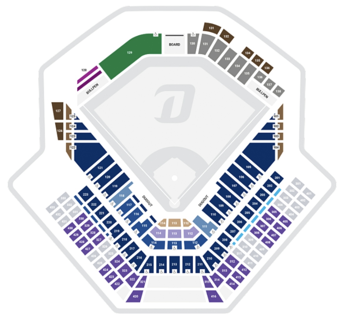 좌우로 경기장은 넓게 잘 보이는 편이다. 저 멀리 3루 주지의 움직임은 그렇게 잘 보이진 않지만 전반적으로 야 구를 관람하는데 큰 문제는 없다. 어차피 응원 한다고 정신이 팔려 있다 보면 여러 장면을 놓칠 수 있다.