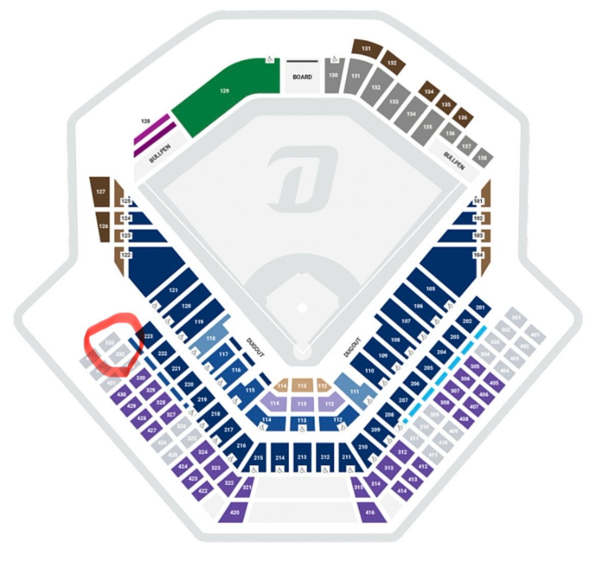 그래서 오늘은 3층으로 올라가 333구역에서 야구를 관람하기로 했다. 이 곳은 3층에서도 3루 쪽으로 가장 맨 끝에 있는 곳이다.